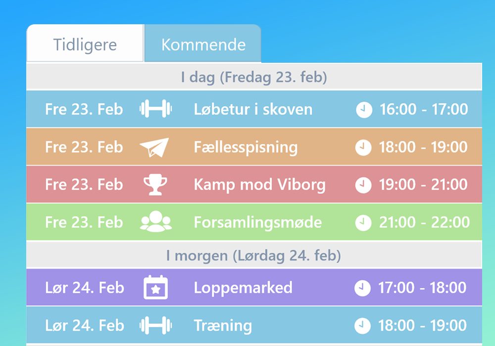 Giver dig hurtigt oversigt over alle kommende og tidligere aktiviteter for dit hold eller gruppe. Anvend oprettet aktivitet som skabelon ved at kopiere aktivitet. Det hele kan klares via appen.