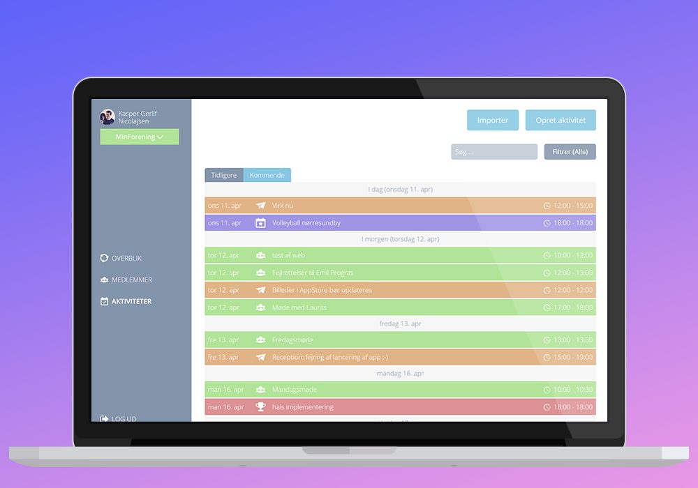Oversigt over dine og foreningens kommende og tidligere aktiviteter.