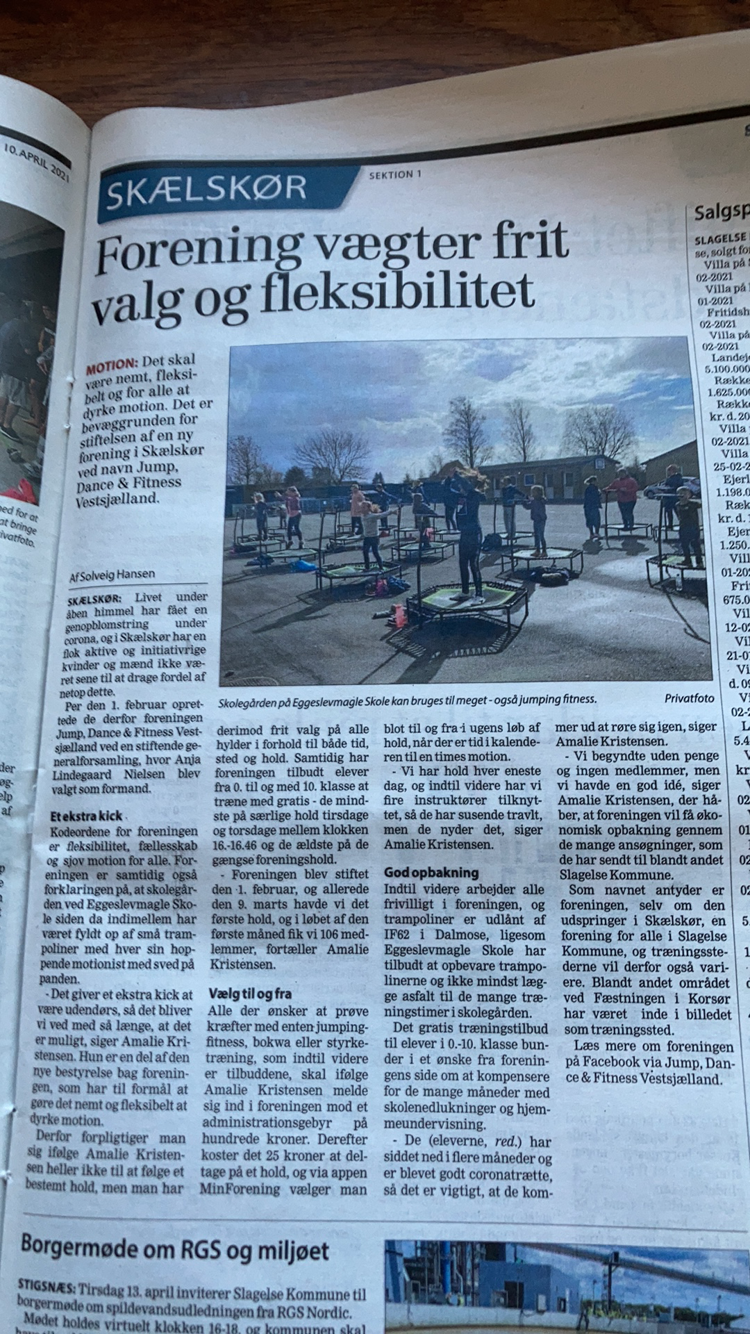 Se også artikel i Sjællandske medier, der omhandler den nystartede forening Jump, Dance & Fitness Vestsjælland, som i løbet af den første måned fik 110 nye medlemmer. Deres succes skyldes, at de har udarbejdet et koncept, som gennem frit valg og fleksibilitet rammer det enkelte medlems behov.